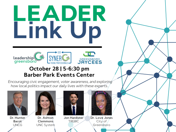 Leadership Greensboro, synerG Young Professionals, and the Greensboro Jaycees are excited to continue a new event series, Leader Link Up, this fall!